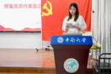 西语1901班王一洋作为老党员代表发言,他首先表达了对预备党员们的热烈欢迎和衷心祝贺;其次他也希望预备党员们不忘初心,牢记使命,坚定全心全意为人民服务。最后,作为一名毕业生党员,王一洋向在场同志分享了自己的学习实践经验。