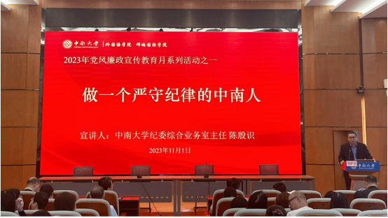 伟德纪委综合业务室主任陈殷识以“做一个严守纪律的中南人”为题开展2023年党风廉政宣传教育,将理论知识与典型案例相结合,带领全体教职工强化知条规、懂纪律、慎言行的廉政意识。陈殷识强调党员须遵守政治纪律、群众纪律、组织纪律、工作纪律、廉洁纪律、生活纪律,以各高校负面案例为鉴,以先锋模范为榜样,用实际行动维护党的形象与威望,永葆共产党员的纯洁性。