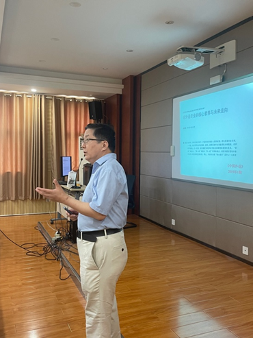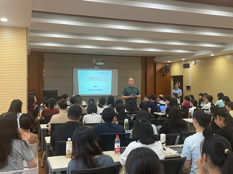 讲座最后,杨文地教授总结指出:郭教授的讲座涵盖了对外语专业建设、外语人才培养、相关环节中的师生在人工智能时代的新思考,并结合国家的要求和现实的考量,强调了信息判断和阐释能力的新要求;讲座为老师与同学们带来了深刻的启发,在AI时代新技术与海量信息的冲击下,员工们不应该随波逐流,要对自身保有清晰的认识,找到自己的方向;外语学科也要吸引更多的人才并改革创新,向郭教授所建议的融通型外语人才方向发展;而老师们要做好新技术的引领者,以开放的心态鼓励员工亮出自己的观点,敢想敢做,进一步培养员工写作能力的同时坚持以创新为目标培养外语人才。