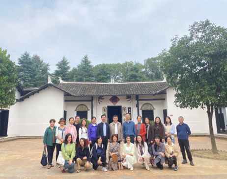 上午九点,集体前往黄兴镇,首站是湖南辛亥革命人物纪念馆和黄兴故居。纪念馆内绿树成荫,钟灵毓秀,故居四周庄河环绕,小桥流水,一派田园风光。塘畔依旧遍植垂柳,而今天地换新篇,过往却值得我们沉思和缅怀。黄兴故居纪念馆于1980年成立,1981年正式对外开放。故居共有房屋53间,占地面积约28亩。各展厅内,生动的图片、文字与讲解员精彩的阐述,重现黄兴和各位湘籍革命先辈的丰功伟绩,展现革命先驱为救国救民的理想而奋斗的一生。黄兴“笃实”“无我”“灭此朝食”的革命精神、八次坚辞不就的大局观令人震撼,他的不朽功勋和革命精神彪炳千秋,永垂史册。在先烈墙前,我们注意到部分烈士甚至没有照片,感慨万千。李书记即席为我们上了一堂微党课,谈到为新中国献身的百万无名烈士,我们站在黄兴故居前,深刻缅怀革命先烈不计名利、为国为民的情怀和壮志。