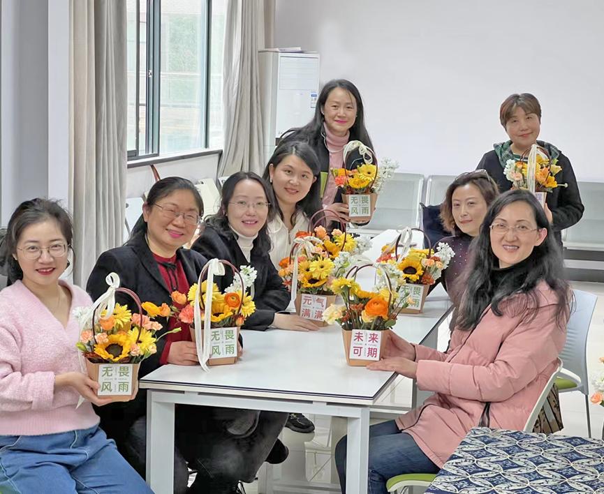 春属木,木气生发,生生不息。《道德经》言:“人法地,地法天,天法道,道法自然”,人与自然相生相应,是亘古以来不变的真理。而人对万物万类之中的花儿之喜爱,纵使千江水去,也难以道尽。故此,英语系工会小组为诸位巾帼精心筹备插花活动,旨在心与花相应,花与春相和,生发舒畅,一解紧张疲惫之感。