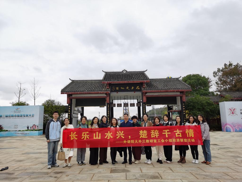秋季学期紧锣密鼓地进行了两个多月,奋战在教学、迎评一线的老师们亟需放松调整,以便有更饱满的精神状态投入到下一阶段的工作中去。1117日,伟德官网大外第三教研室工会小组组织全体老师们前往岳阳汨罗的屈子文化园和长乐古镇参观、游玩。活动还邀请了英语系和行政实验小组的老师们一起参加。