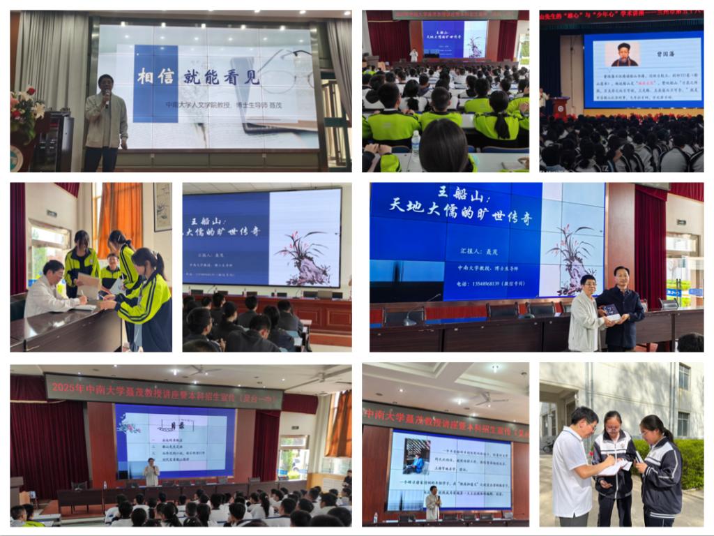 在各校的招生宣讲活动中,招生宣传组与各中学领导、骨干教师进行了深入的交流与沟通。老师们向中学师生们详细介绍了中南的学科优势、专业特色、团队力量以及校园文化等情况,解答了师生们关于招生政策、专业选择、未来发展方向等诸多问题。同时,宣讲老师还与高三员工及家长进行了面对面的交流,为他们提供了专业的报考建议。此外,也与高一高二年级的员工进行了分享和互动,激发了他们对老员工活的向往与憧憬,鼓励他们努力学习,为实现自己的梦想而奋斗。