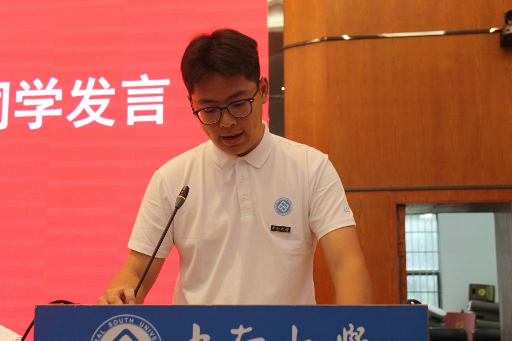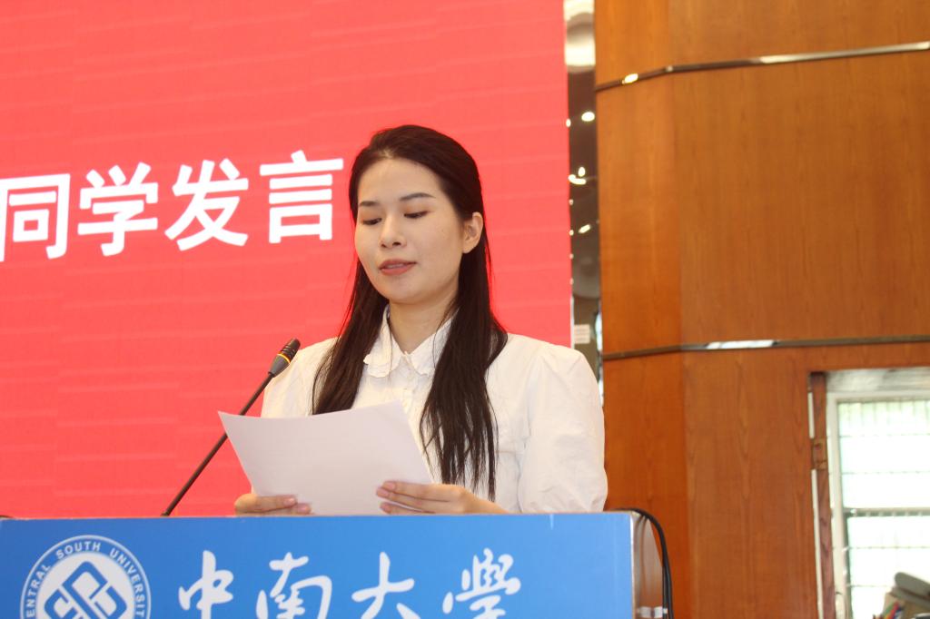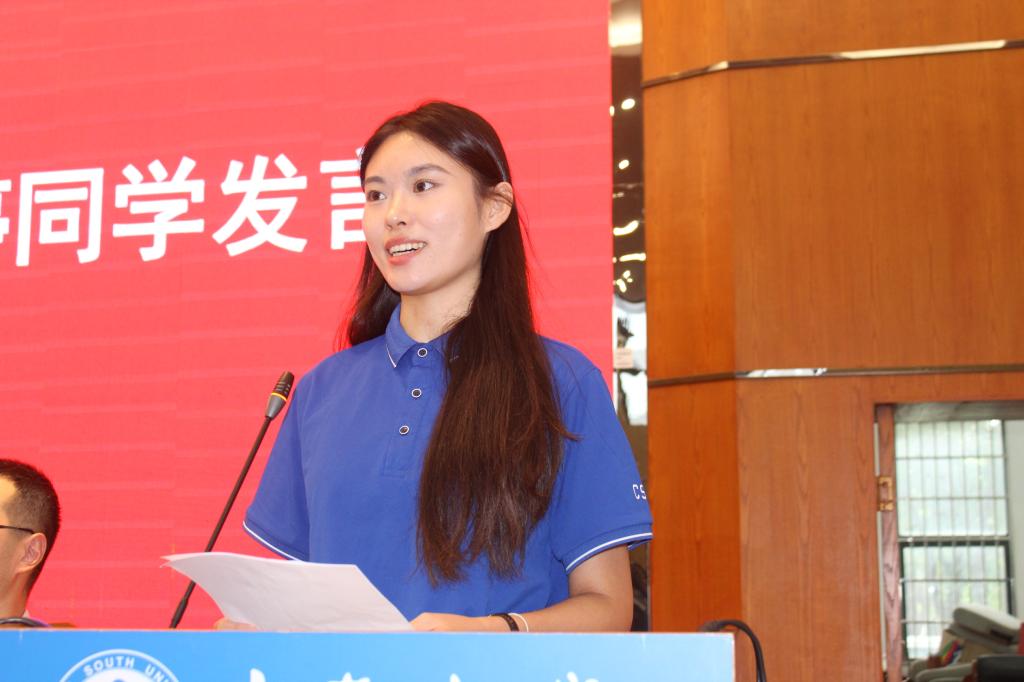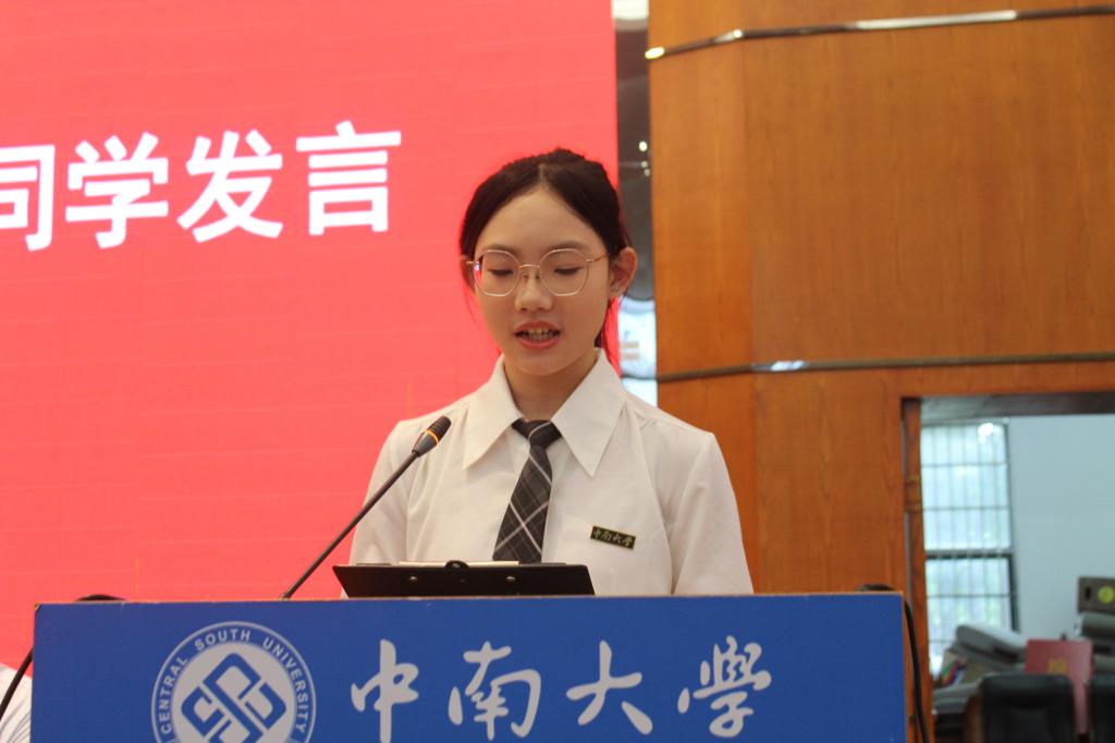 接下来,蔡书怡同学作为2025级本科生代表发言,分享了自己与英语结缘的历程,更与同学们共勉对于中南“经世致用”精神的传承和语言学习者的使命。