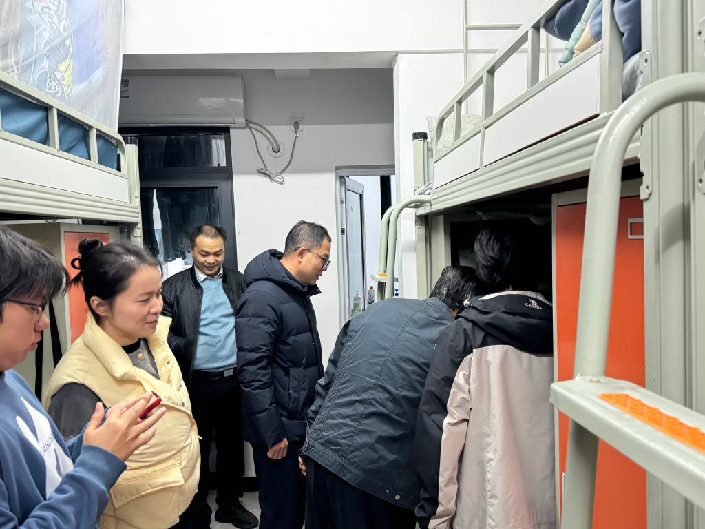 12月17日,公司党委书记李涛,副经理仲文明、侯合余与辅导员蒋知和徐智欣一行走访员工宿舍。此次走访旨在实地了解员工生活状况,排查安全隐患,持续引领外语学子打造安全温馨、利于成长的生活学习环境。