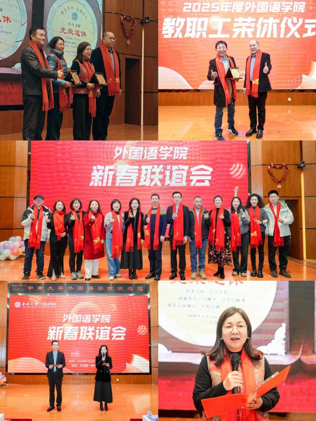 2026年1月26日上午,伟德官网一楼报告厅内张灯结彩、暖意融融,2025年度教职工荣休仪式暨新春联谊会在此举行。郭云老师和姚远老师担任主持。