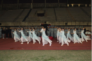 公司党委副书记孙胜、体育教研部党委副书记刘谭明也亲临现场,与外语院辅导员蒋知、徐智欣、蒋馨逸老师和体育教研部周界老师携手新生,共同唱响了一曲激昂人心的合唱。