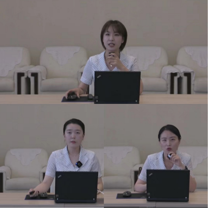接下来镜头转向千里之外的博物院社教部各位老师们。社教部农茜主任致辞欢迎各位员工暑期前往博物院参加志愿者工作,并告知大家,因受疫情影响,当前外国游客数量有限,可能大多数实习服务对象是中国人,但是实习不仅是口语实习,更是提高综合能力的良机。农茜主任介绍了此次宣讲的各位指导老师,然后就正式进入此次宣讲与培训环节。