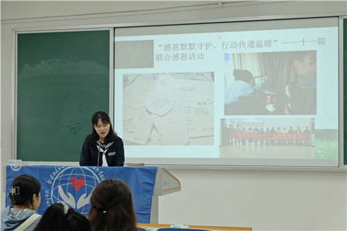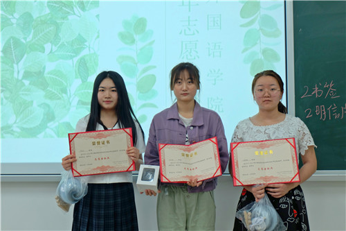 最后,赵瑞、罗洋洋、汪新雅三位同学荣获“优秀志愿者标兵”称号,徐晓庆、顾姗同等18位同学获“优秀志愿者”称号。副部长姚洁莜为他们颁发奖状。