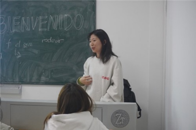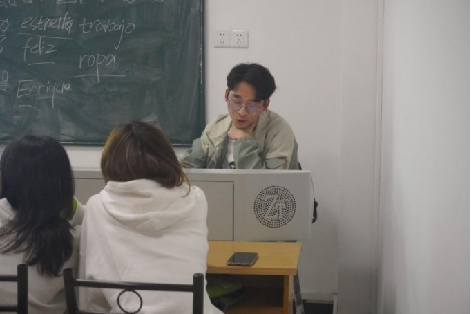 唐鹏程通过别具一格的梅西采访视频和电影分享开启分享,他以幽默诙谐的方式与萌新进行专业交流,调动了分享会的气氛。他强调了坚持进行听力练习的重要性,提出借助原版音乐电影等来锻炼西语能力等方法。随后何杨帆为大家介绍了更为细致的学习技巧,针对语法和听力的学习过程中易出现的问题为大家阐述对应的解决方法,她结合自身实际情况深入浅出地进行讲解,使同学们受益匪浅。