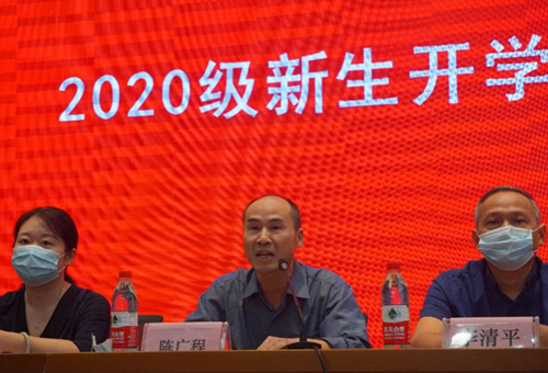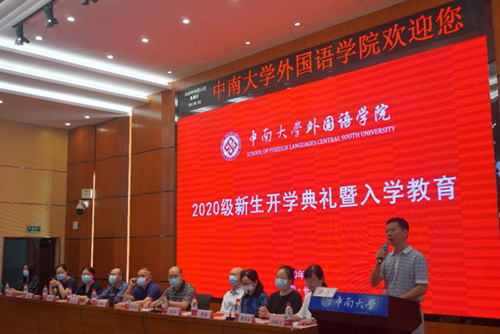 2020年9月13日早上9点,伟德官网2020级新生开学典礼暨入学教育在新校区外语楼国际报告厅顺利举行。出席本次大会的有伟德公司党委书记陈广程、副书记李清平(经理)、孙胜,副经理杨文地、陈洁、中英伦葩、范武邱,英语系主任李玲、日语系主任邓牧、西班牙语系主任肖艳红以及法语系主任夏高琴,全体新生参与了此次大会。大会在国歌声中正式拉开帷幕。