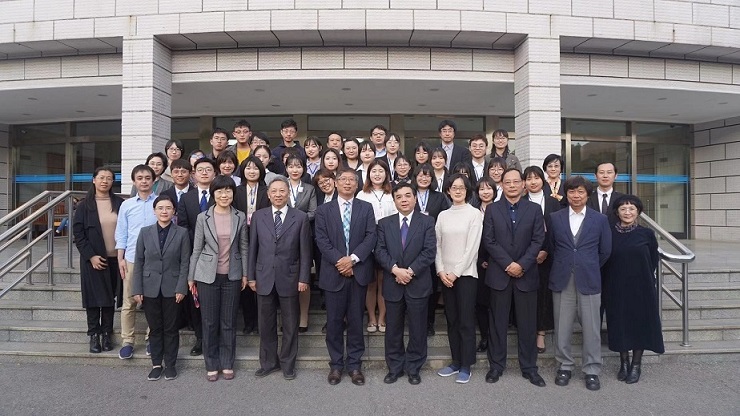 图三为外指委日语分委员会主任修刚教授等评审老师与24名选手、指导老师的合影