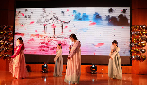 最后是“沐光而期”篇章。尽管天空被云层笼罩,我们也要用自己的力量去冲破云层。花非花,雾非雾,传统曲艺《照花台》与一首《晴天》相碰撞,艺术团呈现了一场视听盛宴;1902班集体献唱的《追梦》勇敢而坚定,自信而潇洒;青春时光缤纷璀璨,恣意年少舞出精彩,1901班的歌舞节目《Para Para Sakura》朝气蓬勃;最后,1905班带来《夜空中最亮的心》,不管未来有多少狂风骤雨,失意彷徨,都该相信:我们是夜空中最亮的星!
