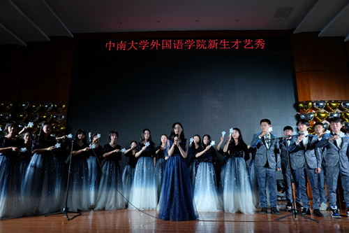 在晚会正式开始前,张绍伦与田雨鑫同学带来朗诵《祖国颂》,颂出了一腔爱国热血;更有2019级辅导员封晨阳老师携同学们带来歌舞表演《小幸运》作为暖场预热,拉开晚会序幕。晚会共分三个篇章:Seeking for the gleam(觅光而至);Flying towards the light(循光而上); Twinkling in the future(沐光而期)。