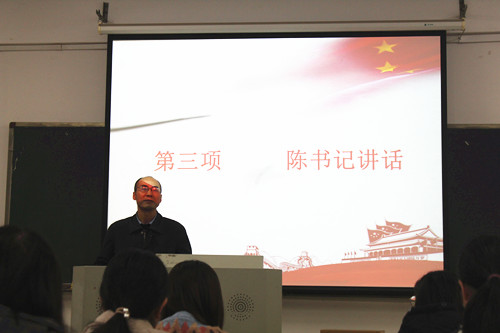 接下来,外语公司党委陈广程书记发表讲话,他向同学们强调了参加培训班的目的的和意义,并提出三点希望:一、坚定理想信念,端正入党动机,坚持四个自信,树立四个意识;二、学用结合,增强才干,努力学习马克思主义;三、珍惜机会,争取在学习中取得更多收获,抓住在培训班学习的机会。陈书记也预祝各位积极入党分子尽早在思想上入党,为人民服务:“未进党的门,先成党的人。”
