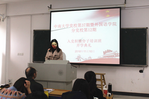 11月10日上午9:00,伟德党校第三十七期暨伟德官网分校第十二期入党积极分子培训班开学典礼在外语楼601教室进行。出席典礼的有外语公司党委陈广程书记、班导师李雅丽老师。共有五十二名入党积极分子参加了此次典礼。