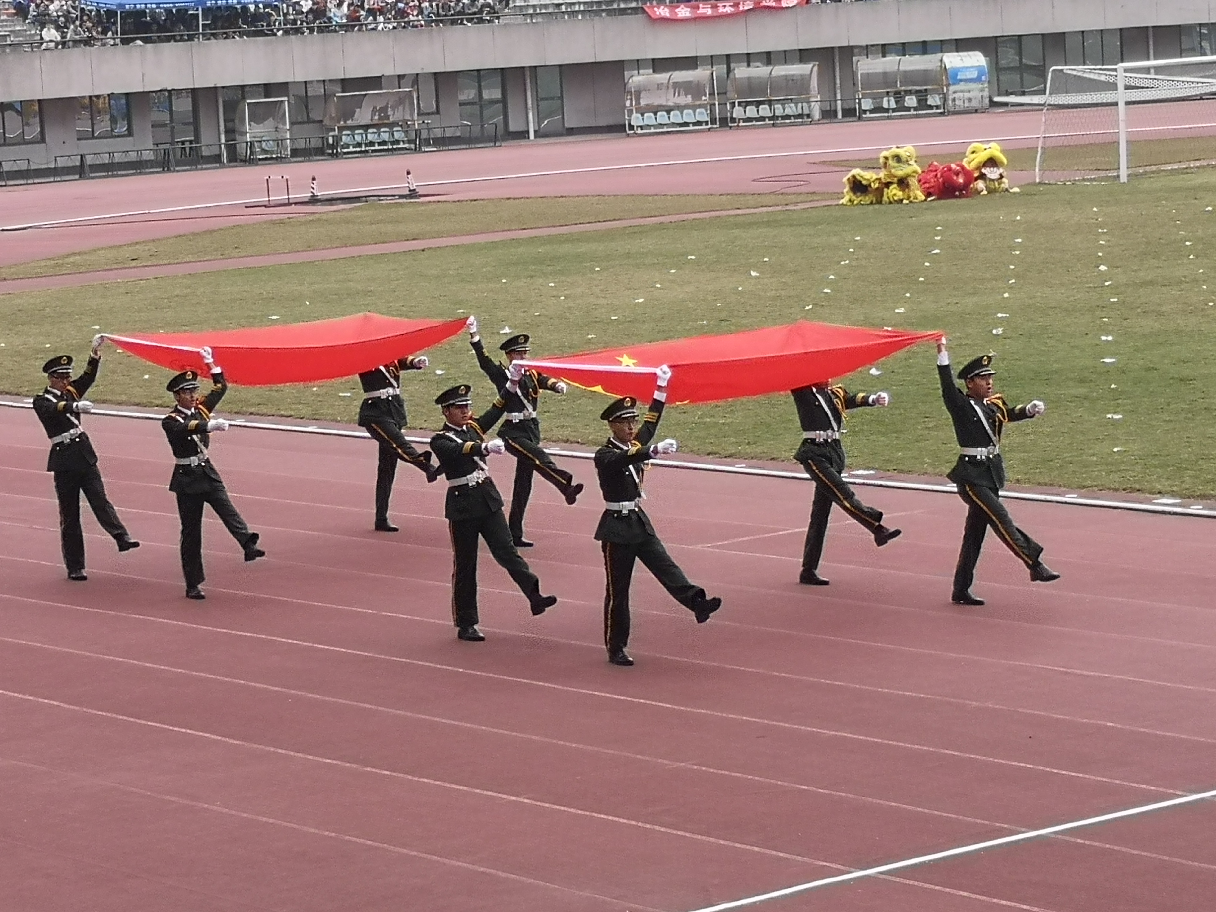 校方领导发表讲话后,团体表演压轴出场。鼓声阵阵,舞龙队伍以他们精湛的技艺和昂扬向上的精神风貌赢得了如雷的掌声;刚柔并济,太极拳的一招一式中体现的是中南学子对国学武术的传承;青春洋溢的广场舞引来现场的阵阵欢呼;花式跳绳的创新使得观众惊叹连连……绿茵场上,外语院的莘莘学子们挥洒着汗水,最终在团体项目中荣获广场舞一等奖、太极拳三等奖,这无疑是对他们连日来辛苦训练的最大褒奖。