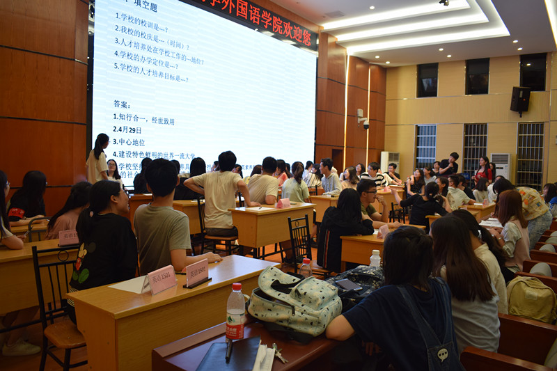 为促进公司优良学风建设,全面迎接本科教学审核评估工作,使员工充分了解公司的办学理念、办学目标、办学定位、办学特色和本科人才培养工作的亮点,促进公司学子深入学习和掌握本科教学审核评估知识,伟德官网于5月11日晚7:00在国际报告厅举办“知校情,促评估”知识竞赛活动。伟德官网学工办主任钟佳老师、副主任蒋知老师、团委书记王海洋老师、17级辅导员李雅丽老师以及章佳琪老师出席了本次活动,此次参赛的有来自全院24个班级的24支队伍。