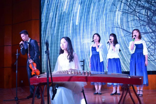 晚会由“冉冉星升、”“熠熠星火”以及“淼‘淼星河”三部分组成。首先是石书雨同学为我们带来的中阮独奏《云南回忆》,悠悠琴声,扣人心弦。接下来是由艺术团同学为我们带来的独具小提琴、二胡及古筝特色的《夜空中最亮的星》。