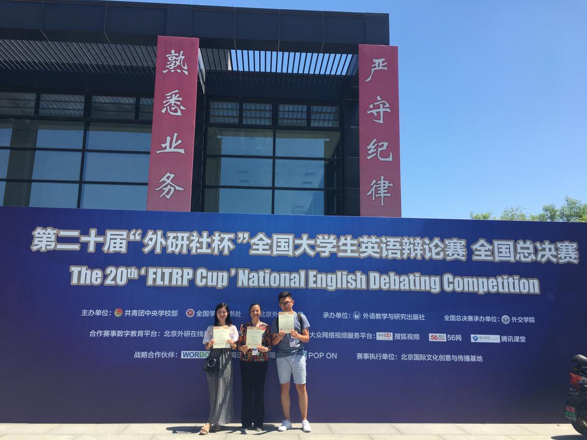 5月18日-25日,2017年“外研社杯”全国老员工英语辩论赛全国总决赛在外交公司圆满落幕。公司14级本科生乔轩东和谭珊珊在指导老师耿俐琴的带领下,凭借扎实的专业功底、丰富的知识储备和敏捷的思维能力,经过8轮激烈的角逐,最终荣获全国二等奖的优异成绩。