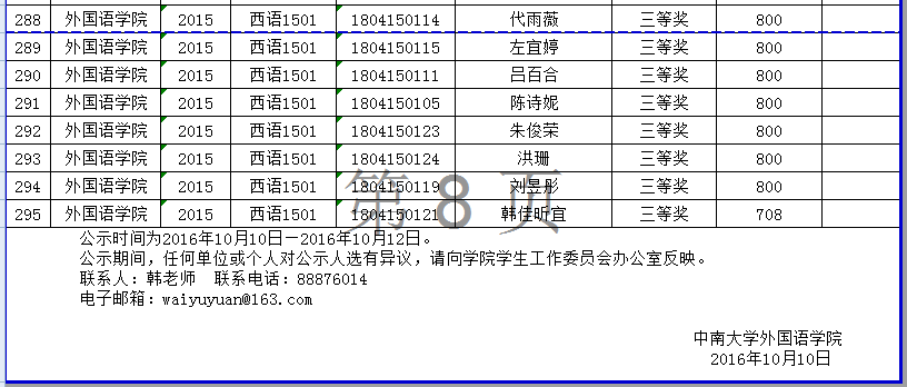 伟德官网2016年学年奖学金公示
