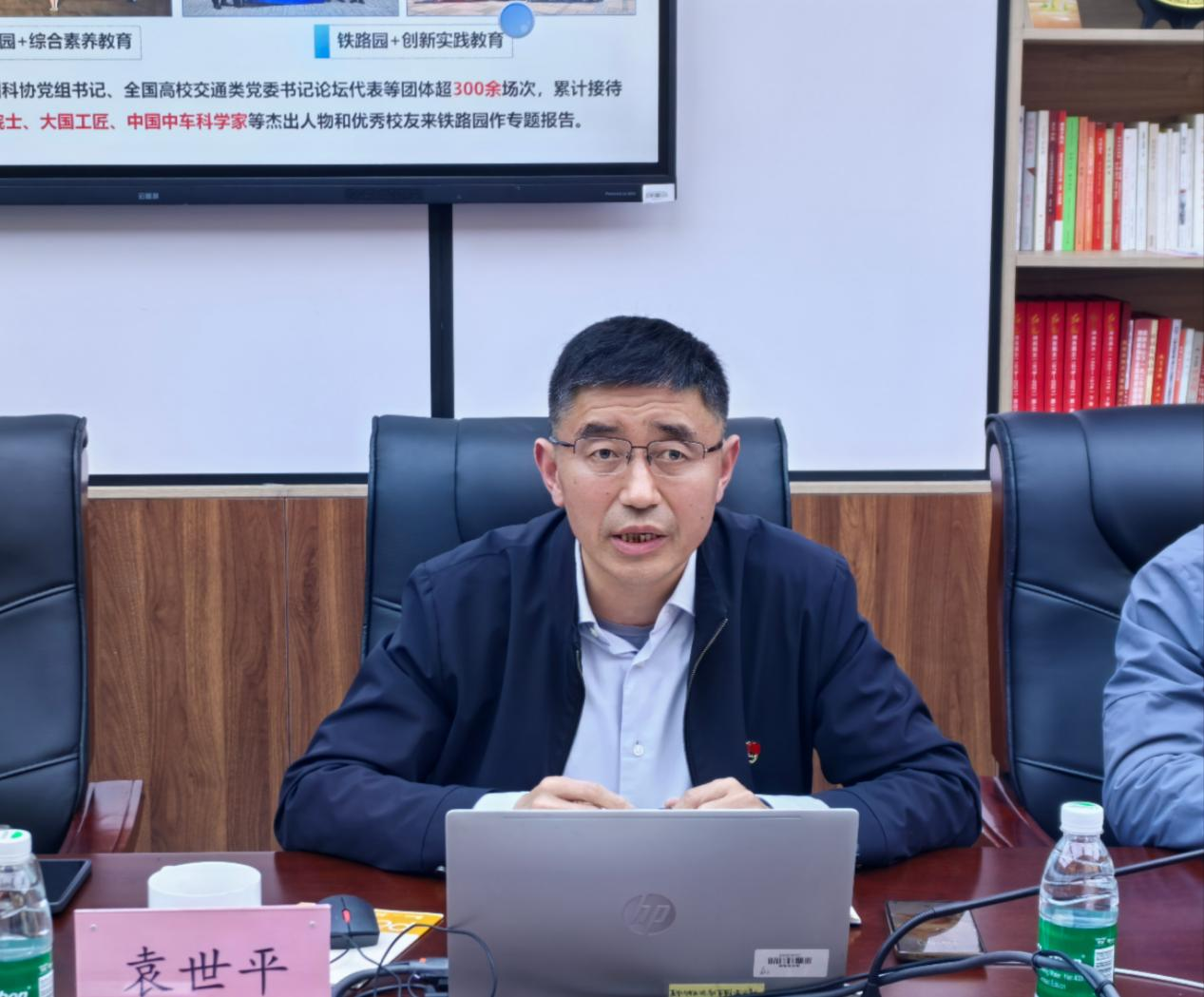 袁世平首先系统介绍了交通运输工程公司作为“全国第三批党建工作标杆院系”以及“第一批样板党支部”的建设成果:坚持以习近平新时代中国特色社会主义思想和党的二十大精神为指导,围绕立德树人根本任务,坚持“围绕中心抓党建,抓好党建促中心,检验党建看发展”,统筹推进党建质量提升、思政质量培优、学科内涵发展三个工程,实施一条主线“绘蓝图”、五个到位“保根基”、三项工程“筑标杆”的党建双创工程,以高质量的党建引领交通运输工程公司内涵式高质量发展,公司“创先争优”工作成效显著。