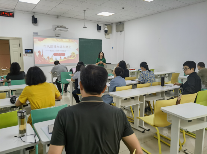 分享过程中,谢芸提到,延安整风运动 (1942-1945)是党的作风建设的伟大创举,开创了用整风方式加强党的作风建设的成功范例,使积极开展批评和自我批评成为我们党的优良传统。最终,延安作风打败了西安作风,中国共产党以良好作风赢得民心,团结带领中国人民取得了新民主主义革命的胜利。新中国成立前夕,毛泽东提出了“务必使同志们继续地保持谦虚、谨慎、不骄、不躁的作风,务必使同志们继续地保持艰苦奋斗的作风”,并题词警示人们,“不要沾染官僚主义作风”。改革开放后,邓小平提出“切实把我们的党风搞好”,党中央作出了一系列部署,健全党规党法,严肃党纪,弘扬党的优良作风,保持党同人民群众的血肉联系。2012年12月4日,习近平总书记主持召开中央政治局会议,审议通过《十八届中央政治局关于改进工作作风、密切联系群众的八项规定》,对中央政治局的同志改进工作作风提出明确要求。 “八项规定一子落地,作风建设满盘皆活”,极大提升了党在人民心目中的形象和威信。最后,谢芸总结说,历史和现实充分证明,党的作风正,人民的心气顺,党和人民就能同甘共苦,党和国家事业就会蓬勃发展。全体党员要以作风建设新成效推动保持党的先进性和纯洁性,不断赢得人民群众信任拥护,为进一步全面深化改革、推进中国式现代化提供有力保障。