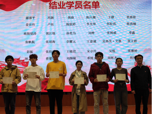 典礼在嘹亮的国歌声中拉开序幕。随后,蒋馨逸对此次发展对象培训作了基本总结。在本期培训班期间,全体学员认真听课,通过个人自学、小组讨论、长沙历史馆现场学习、社会实践,在理论上有收获、在思想上更成熟、在行动上更进步。