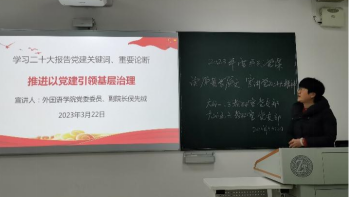 3月22日下午,两个党支部的党员相聚外语楼105教室,共同聆听公司党委委员、副经理侯先绒以“学习二十大报告党建关键词、重要论断——推进以党建引领基层治理”为题讲的党课。侯先绒讲到,在高等教育领域,公司大学外语教育中心以教研室为基础的基层党支部应该结合大学外语公司产品这一中心工作,着力推进以党建引领基层治理,不断提升教学质量,培根铸魂,落实“立德树人”的根本任务。