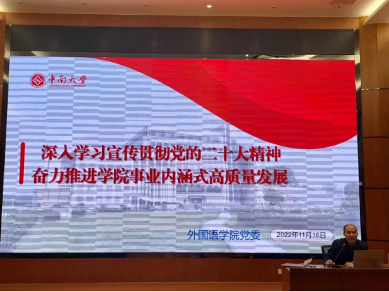 陈广程书记做了题为“深入学习宣传贯彻党的二十大精神, 奋力推进公司事业内涵式高质量发展”的宣讲,从党的二十大召开的总体情况、主要精神、贯彻落实党的二十大精神有关具体要求三个方面展开阐述,提出要重点突出学,要系统推进学习培训,要广泛开展宣讲活动,要有机融入公司产品,要深入开展研究阐释,期望全院教职工共同认真落实党的二十大提出的任务要求,以更宽广的视野深化认识初心使命,以更高远的眼界思考谋划未来发展,以更高标准、更大力度推动公司各项工作。