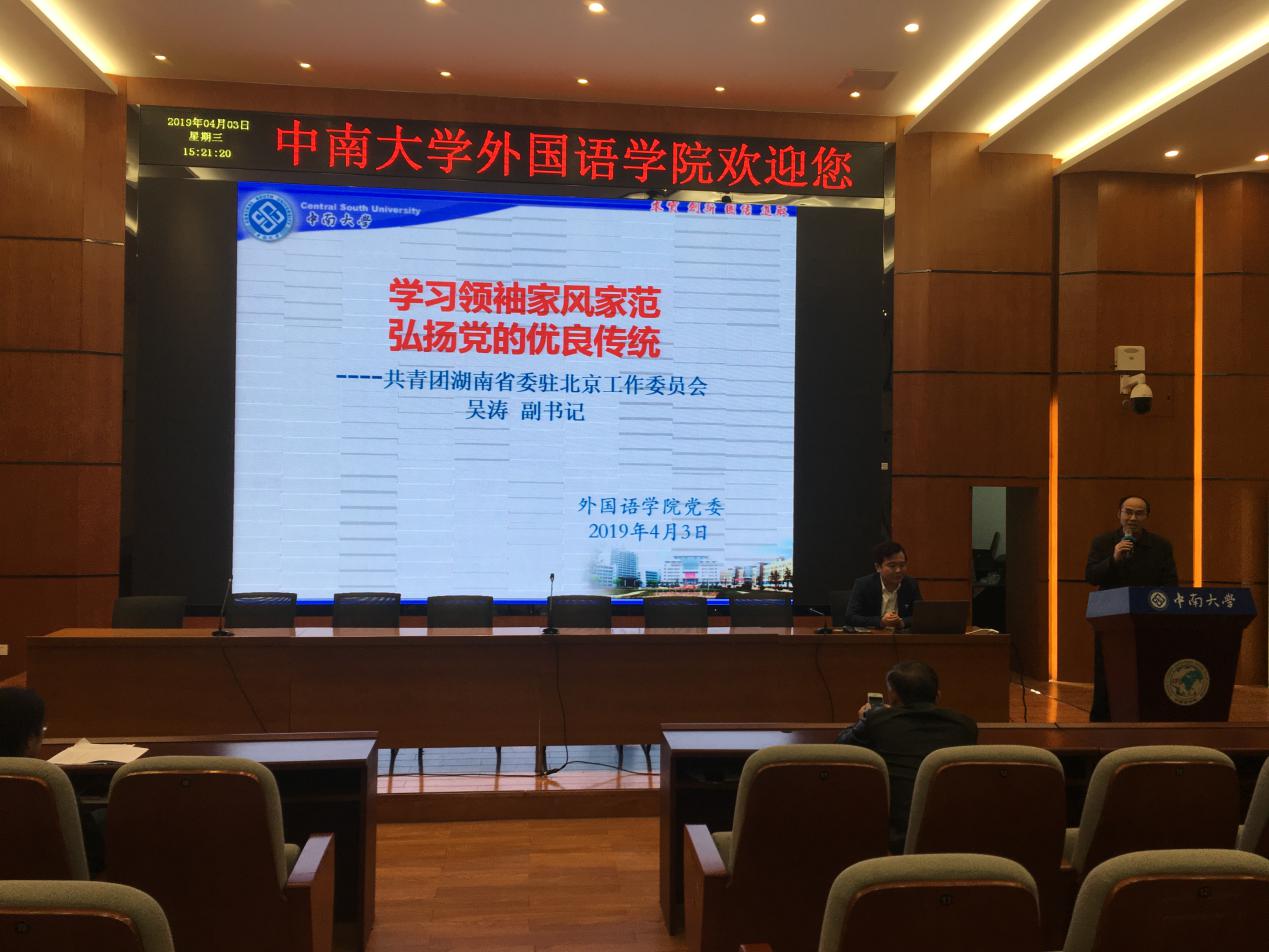 (通讯员:罗雪)为深入开展“不忘初心 牢记使命”主题教育,4月3日下午公司党委举办了“不忘初心使命,传承领袖家风”主题党课教育,旨在使全体党员牢记党的初心与使命,学习传承领袖家风家风、弘扬党的优良传统作风,规范自身行为。公司全体党员同志于在外语楼一楼报告厅进行集体党课学习。本次党课由湖南省第十一届青联常委、共青团湖南省委驻北京市工作委员会副书记、共青团北京市委团员青年党史教育项目主管吴涛同志担任主讲人。公司党委书记陈广程同志主持了党课学习。