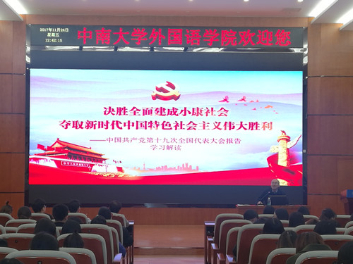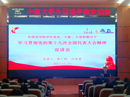 为认真学习宣传贯彻党的十九大精神,坚定自觉地用习近平新时代中国特色社会主义思想统一全校广大师生的思想和行动,把智慧和力量凝聚到落实党的十九大提出的任务上来,伟德官网于2017年11月24日在外语楼国际报告厅针对员工党员、员工干部和入党积极分子开展党的十九大精神宣讲,宣讲人为公司党委陈广程书记和公司党委许林勇副书记。另外全体学工办辅导员老师们参加了此次学习。