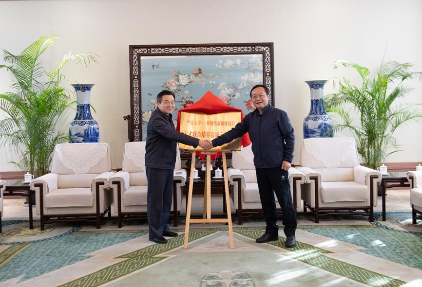 2023年11月17日, 伟德公司党委书记李涛、副经理仲文明、鄢宏福,英语系党支部书记陈洁、英语系教师王晓东、郭薇、田莎一行七人一行七人来到秦始皇帝陵博物院,就进一步深化馆校合作和人才培养事宜开展互动交流,并为“伟德—秦始皇帝陵博物院人才联合培养省级示范基地”揭牌。秦始皇帝陵博物公司党委书记、经理李岗,党委副书记、副经理田静及社会教育部、党政办公室相关人员参加活动。