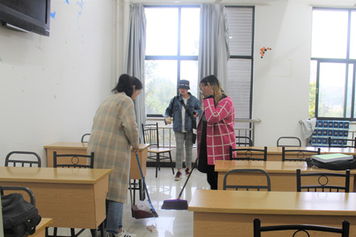 天气正好,阳光洒在做着清扫任务的同学们身上,带来一阵阵的暖意。任务是一开始就分配好了的——每个部门负责清洁不同的区域,部门内部的成员又负责每一项具体的任务。在本次清扫活动中,扫帚、铲子、毛巾等劳动工具是同学们有利的“助手”,在工具的“协助”下,同学们分工明确、各司其职,更不曾偷懒放纵,仅仅用不到半小时时间,便以团结协作的方式完美地完成了清扫任务。这幢在夕阳的余晖中焕然一新的外语楼,便是对同学们认真完成清扫任务的无声褒奖。