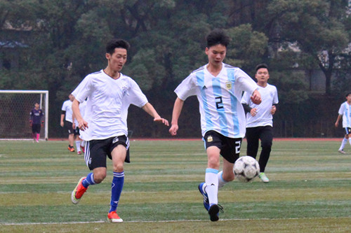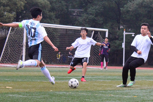 暂时落后的比分并没有削弱伟德官网队员的比赛热情,在下半场比赛中,他们不断寻找机会,团结协作与相互鼓励让他们愈战愈勇。终于,10号队员薛九洲成功把握住射门机会,为伟德官网队射入一球,将比分追成2:1。场下的观众们热情高涨,都奋力地大声为队员们呐喊加油。硝烟弥漫,战火重燃,队员们忘记了身体的疲惫,在防守的同时用力抓住每一秒向对方球门进攻。伟德官网队凭借有效的配合、高超的技术和超凡的体能掌握住控球权,在比赛将要结束的最后几秒时间内,7号队员陈剑锋,伟德官网足球队队长,成功射入一颗球,最终追平了比分。
