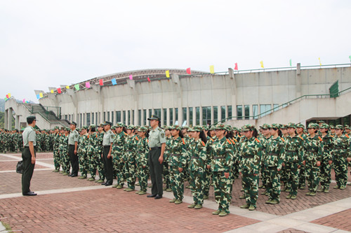 外院最大的特点便是女生多,尽管赤日当空,但巾帼不让须眉,外院的学子们热情不减,精神抖擞地参与到了各个项目训练当中。在军训中,高温酷暑给军训工作带来困难,有的员工病倒了,凭借着顽强的意志,稍有好转便坚持训练;有的员工带病仍在坚持训练。在部队教官亲切的关怀和严格训练下,在短短的几天里,齐步走、正步走、齐步变正步、解散、集合及分列式等预定训练科目已初见成效。教官手把手教,员工认真的学,在军训队列考核中,方队整齐,精神饱满,步伐矫健、口令准确、声音嘹亮,走出了外院的风采。