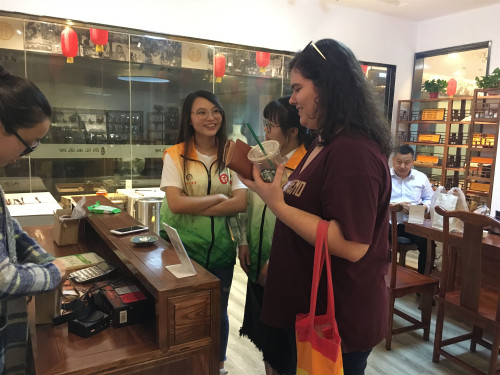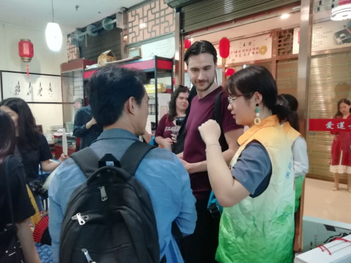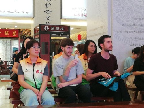本次活动中,双语讲解师能够按照既定路线引领青年代表们进行游览,并且能用流利地道的英语进行沟通交流。讲师对于每一项非物质文化遗产的讲解内容丰富详实,讲解风格诙谐幽默,讲解方式独具一格,在讲师的讲解下,整体活动氛围十分轻松与活跃。同时,伟德官网的志愿者们也积极向海外青年代表们介绍中国的特色非遗技艺,向外国友人展现了东道主的欢迎与热情。除了内容讲解,志愿者们及时可靠的服务工也为本次活动成功进行做出莫大的贡献。