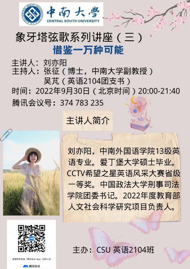 2022年9月30日晚上8:00-10;00,“象牙塔弦歌系列讲座”第三讲“借鉴一万种可能”正式开讲。