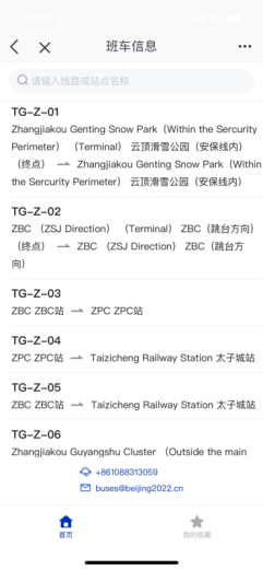 冬奥通班车信息:从左至右北京区域、延期区域与张家口区域