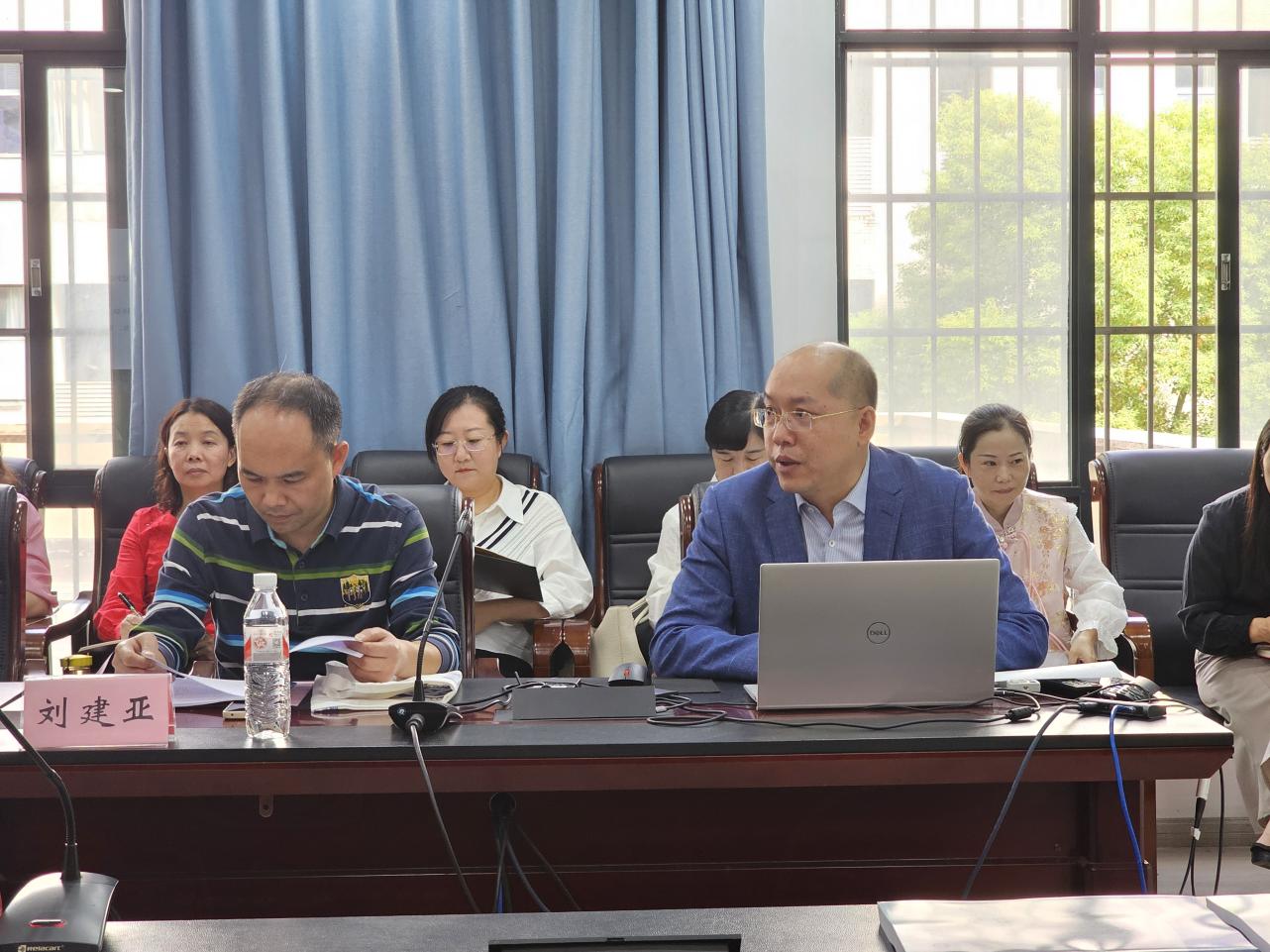 杨文地结合公司自评报告,报告了公司迎评工作进展,并对公司本科公司产品工作,包括党的领导、培养过程、教师队伍、员工发展、质量管理、教学成效等进行了全面汇报。