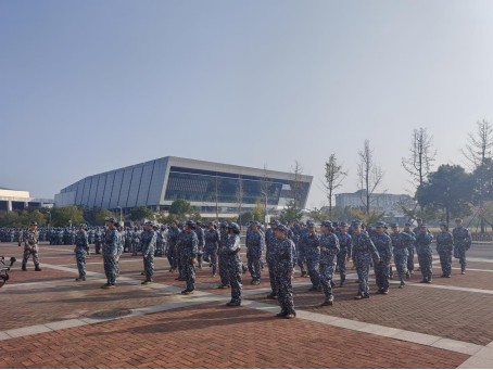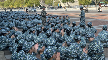 在上午的队列训练过程中,教官们严谨细致地纠正同学们动作上的错误,鼓励他们要勇于自我突破。同学们勤奋练习,逐步把握军姿的动作要领,挺拔的胸膛和笔直的身姿展现了他们显著的训练成果。