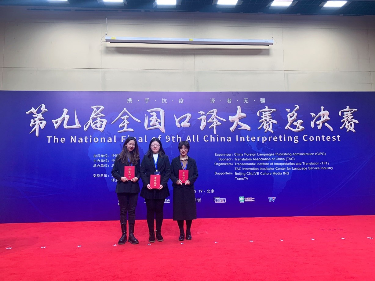 公司学子在本届比赛中成绩斐然,18级口译文宁、19级口译曾逸获得交传总决赛二等奖;19级口译李雪妍获得交传总决赛三等奖,公司张春敏、郭薇老师荣获优秀指导教师奖。(通讯员:曾逸)