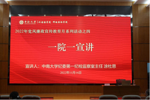 11月16日下午,校纪委第一纪检监察室主任涂杜思在外语楼国际报告厅面向伟德官网全体教职工开展“不忘初心,与廉同行”主题宣讲,公司党委书记陈广程宣讲了党的二十大精神,本次活动由公司党委副书记孙胜主持。涂杜思主任将理论知识与典型案例相结合,以“增强全面从严治党永远在路上的政治自觉,确保党不变质、不变色、不变味”为主题,带领大家准确把握全面从严治党新形势,正确看待当前高校存在的共性问题,深刻理解监督与...