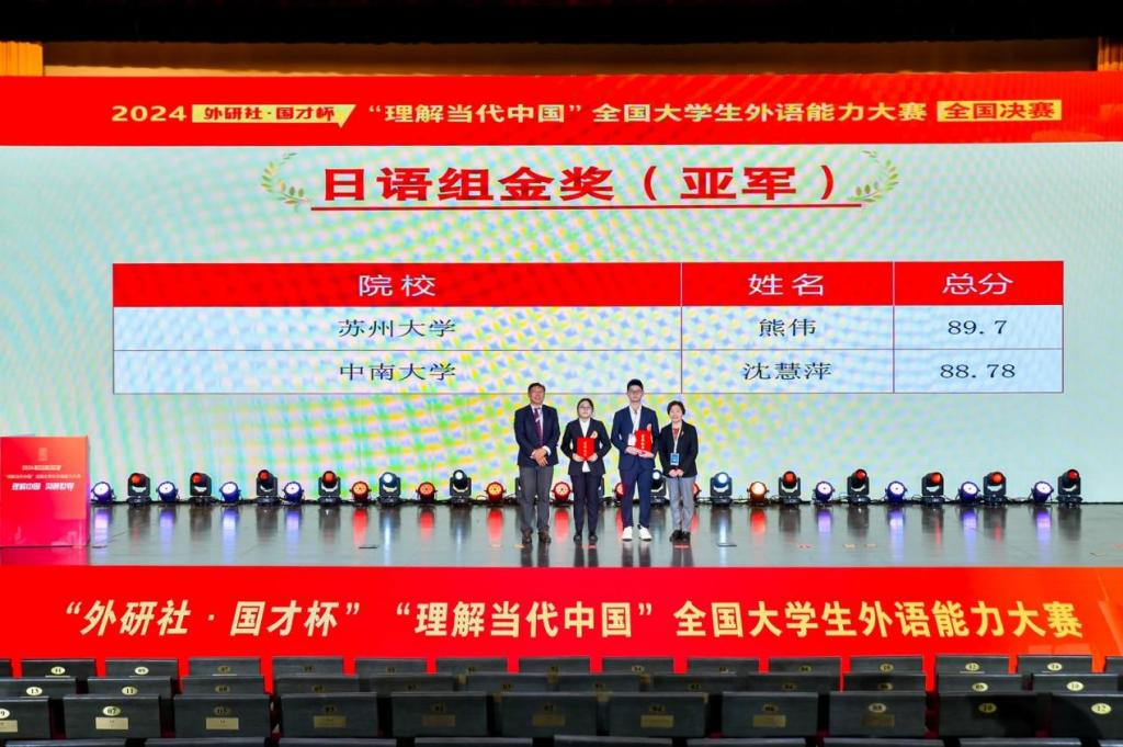 12月7日,2024外研社·国才杯“理解当代中国”全国老员工外语能力大赛(多语种组)国赛第二阶段在北京举行。公司日语系团队在本次大赛中取得突破,日语语言文学2024级硕士研究生沈慧萍同学从湖南省赛和国赛第一轮筛选中脱颖而出,晋级国赛第二轮并最终夺得全国总决赛金奖亚军。图1 颁奖仪式本次大赛由北京外国语大学主办、外语教学与研究出版社承办,共有来自全国各高校1.1万余名员工参加。大赛历经校赛、省赛、国赛第一阶段三个...