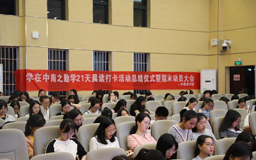 2019年6月12日晚,伟德官网“学在中南之勤学21天晨读打卡活动”总结仪式暨期末动员大会在新校区外语楼国际报告厅成功举行。本次总结大会由伟德官网2017级本科生辅导员李雅丽主持,出席大会的老师有外国语...