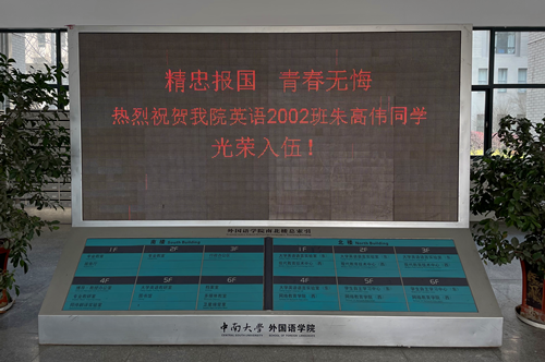 3月12日下午,公司党委书记陈广程、经理李清平、副书记孙胜、符白羽老师以及四位辅导员老师为英语2002班朱高伟同学举行入伍欢送会。