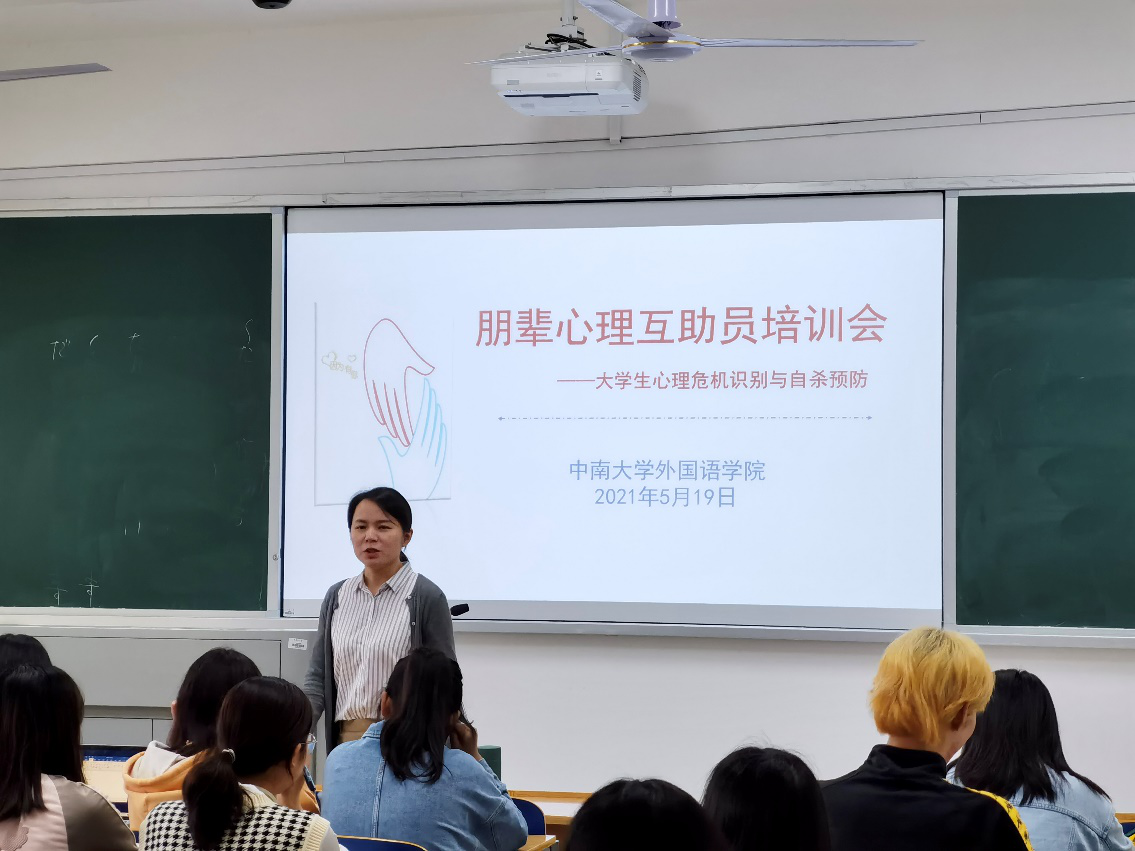 5月19日下午,公司朋辈心理互助员培训会议在外语楼604举办。此次会议由本科生20级辅导员蒋知主持,就老员工心理危机识别与自杀预防专题,对20级各班朋辈心理互助员做出了培训、要求、总结和展望。