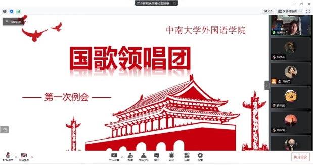 为响应“高唱国歌,共讲党史”的号召,公司在校团委、公司党委的指导下成立了国歌领唱团。4月7日晚19点,公司国歌领唱团第一次例会于腾讯会议成功召开,国歌领唱团团长周嵘铃担任会议主持人,领唱团全体成员参会。 周嵘铃首先介绍了国歌领唱团的规章制度,以提高公司员工思想政治素养,激发员工爱党爱国热情,增强理想信念。规章制度包括三方面:领唱团组织制度、领唱团成员的权利与义务及领唱团管理制度。 作为领唱团成员,享有...