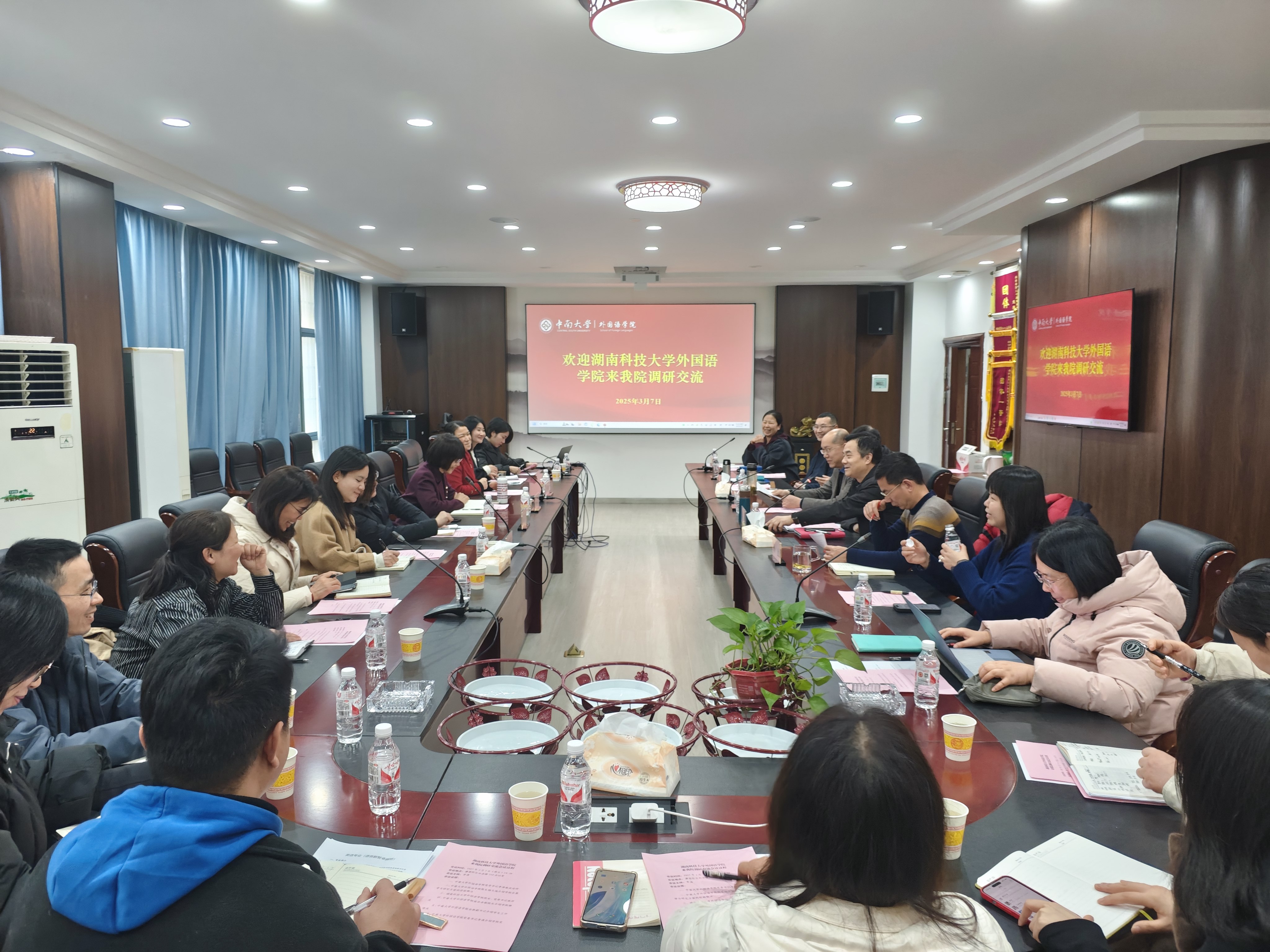 2025年3月7日下午,湖南科技大学公司党委书记周启强、经理禹玲、党委副书记刘菁菁、副经理曾建松等一行13人来到伟德官网,就外语专业人才培养特色、专业发展、团队建设、大学英语教学、员工工作以及双方今后的交流与合作等方面进行调研交流。调研交流会由伟德公司党委书记李涛主持,经理杨文地以及公司领导班子成员、英语系副主任方哲英、日语系主任邓牧、大学外语教育中心四教研室主任李瑶等人参与...
