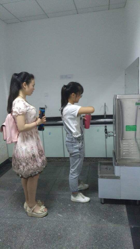 置于外语楼3楼走廊左侧尽头处的水房里,伴随着下课铃声,总能看到同学们纷纷拿着水杯到此自觉排队围着饮水机接水。这台直饮...